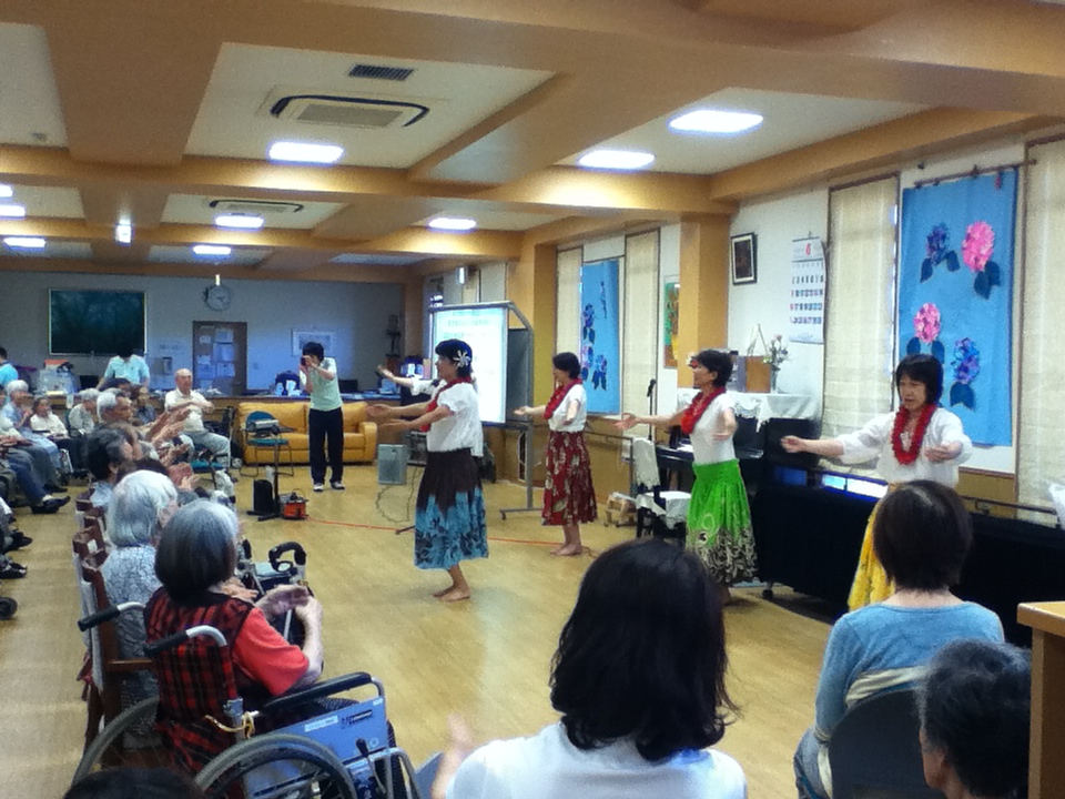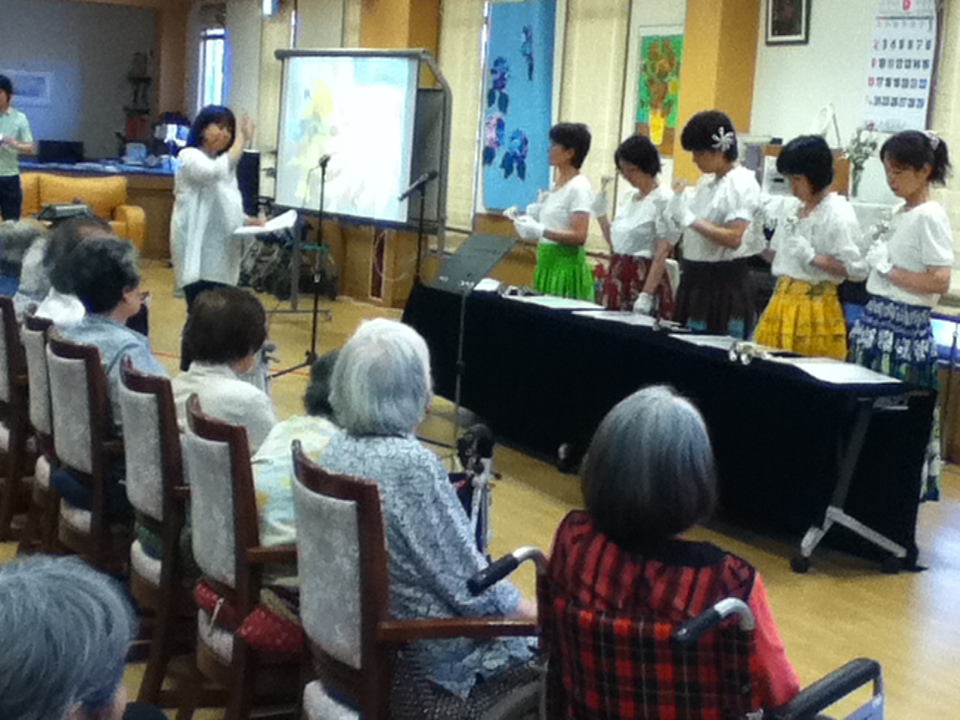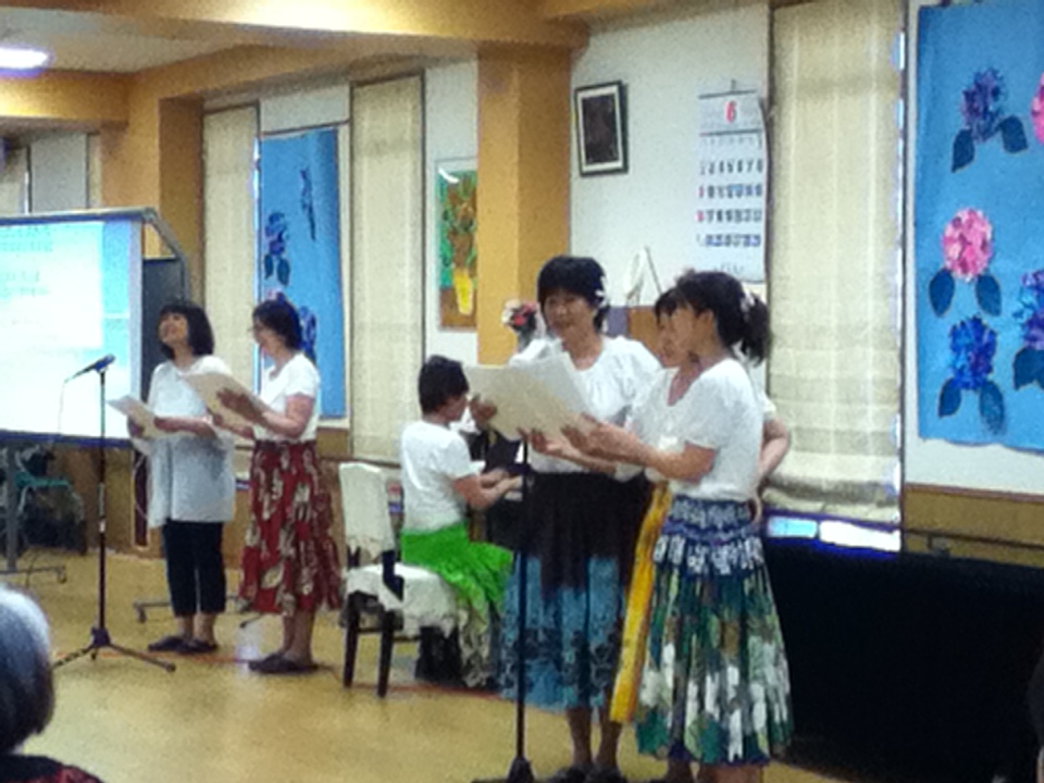 ハンドベル演奏、フラ賛美、童謡・唱歌、牧師メッセージの内容で、利用者の方々と楽しい時をもてて感謝でした。