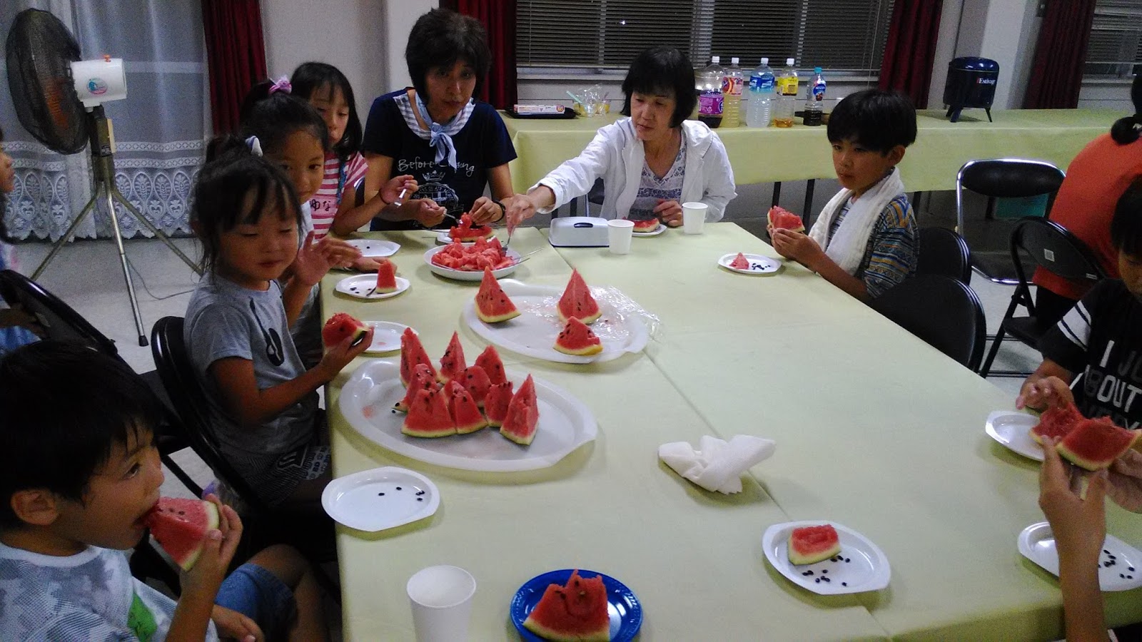 2016.8.3-4 ジョイフルキャンプ その3 Joyful Camp 2016-3 2016-08-042018-03-15 投稿者: sayamaec 夜の集会・ゲームとお話 すいかわり 花火 2日目 朝 体操~ごはん