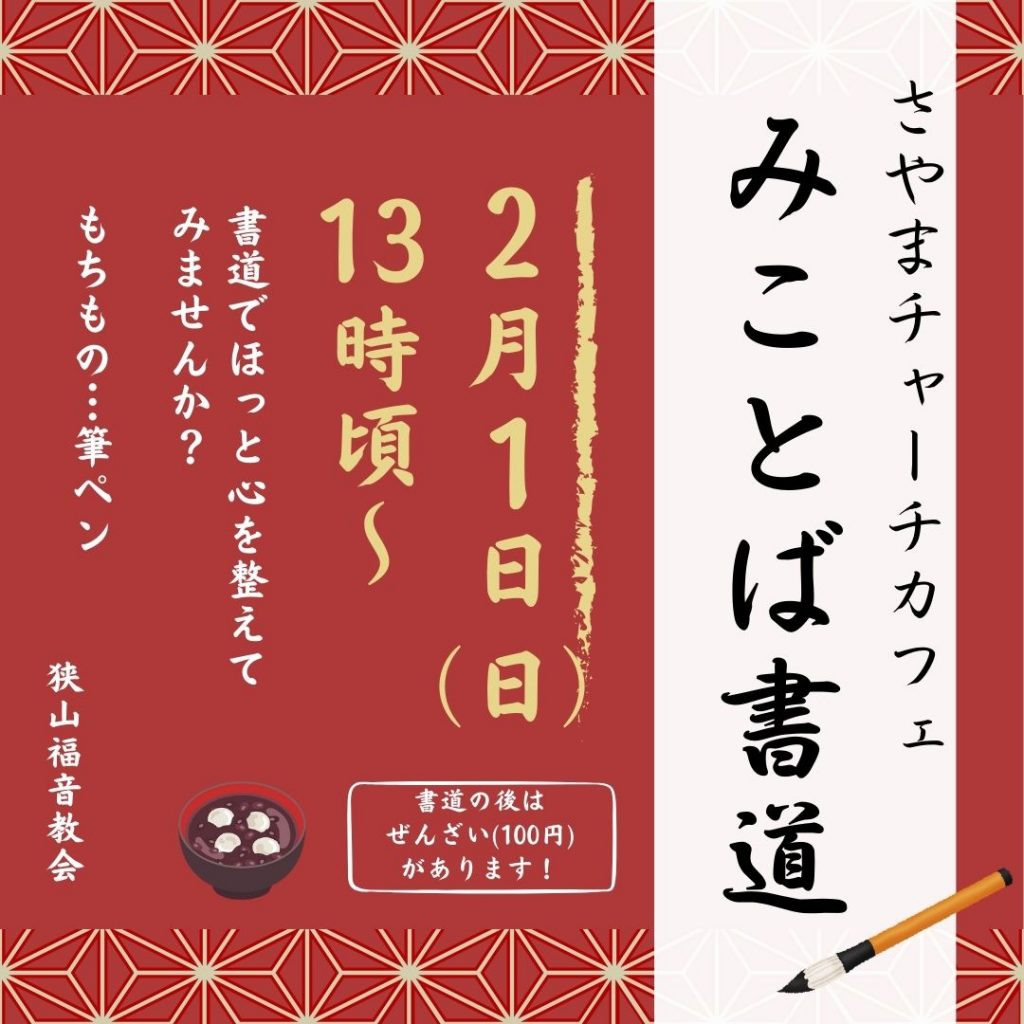 2026.2.1 みことば書道しませんか 2026-01-162026-01-16 投稿者: sayamaec チャーチカフェ番外編 詳しくは https://m.facebook.com/sayamaec/ このサイトをフォローする! @sayamaec