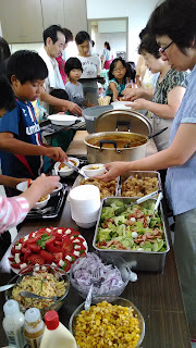 | 食事準備の様子 汗だくで揚げ物をしてくれています |